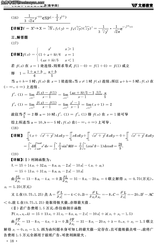 2007半岛在线注册数学考前必做三套题(数学四试卷二)(8)