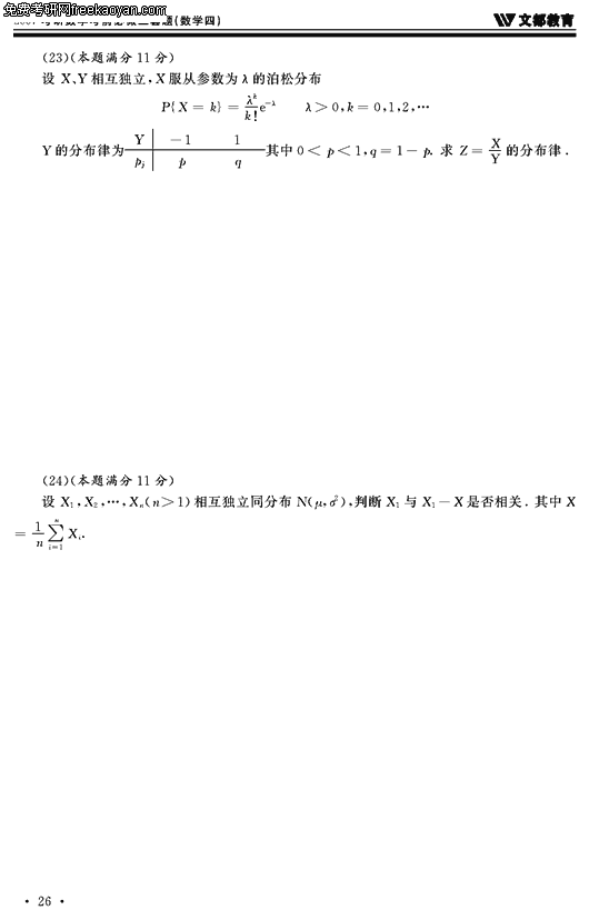 2007半岛在线注册数学考前必做三套题(数学四试卷三)(5)