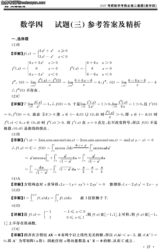 2007半岛在线注册数学考前必做三套题(数学四试卷三)(6)
