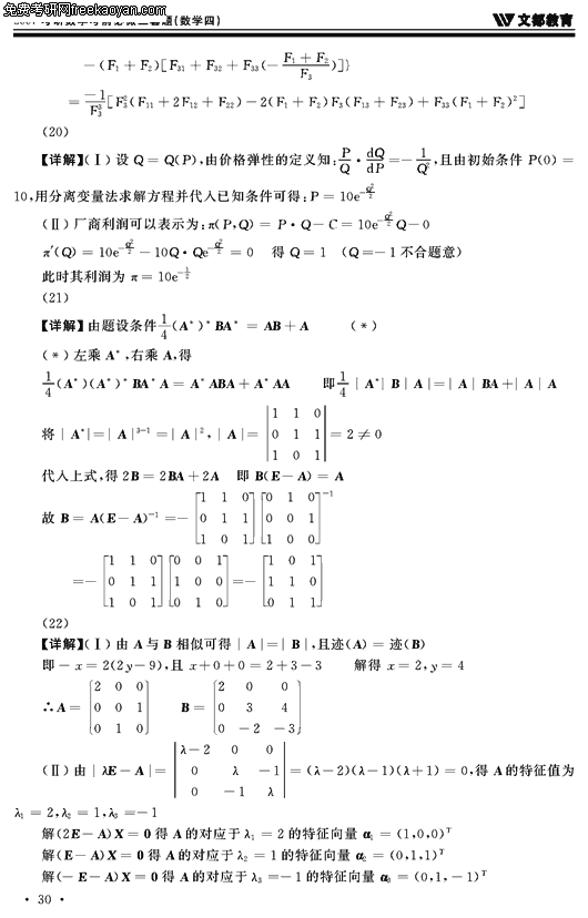 2007半岛在线注册数学考前必做三套题(数学四试卷三)(9)