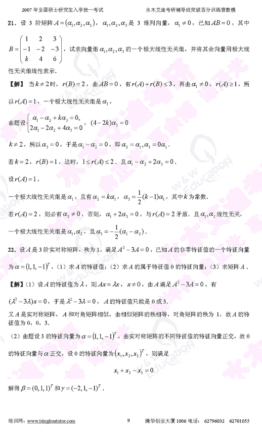 2007年硕士研究生入学考试数学(一)模拟试卷(9)