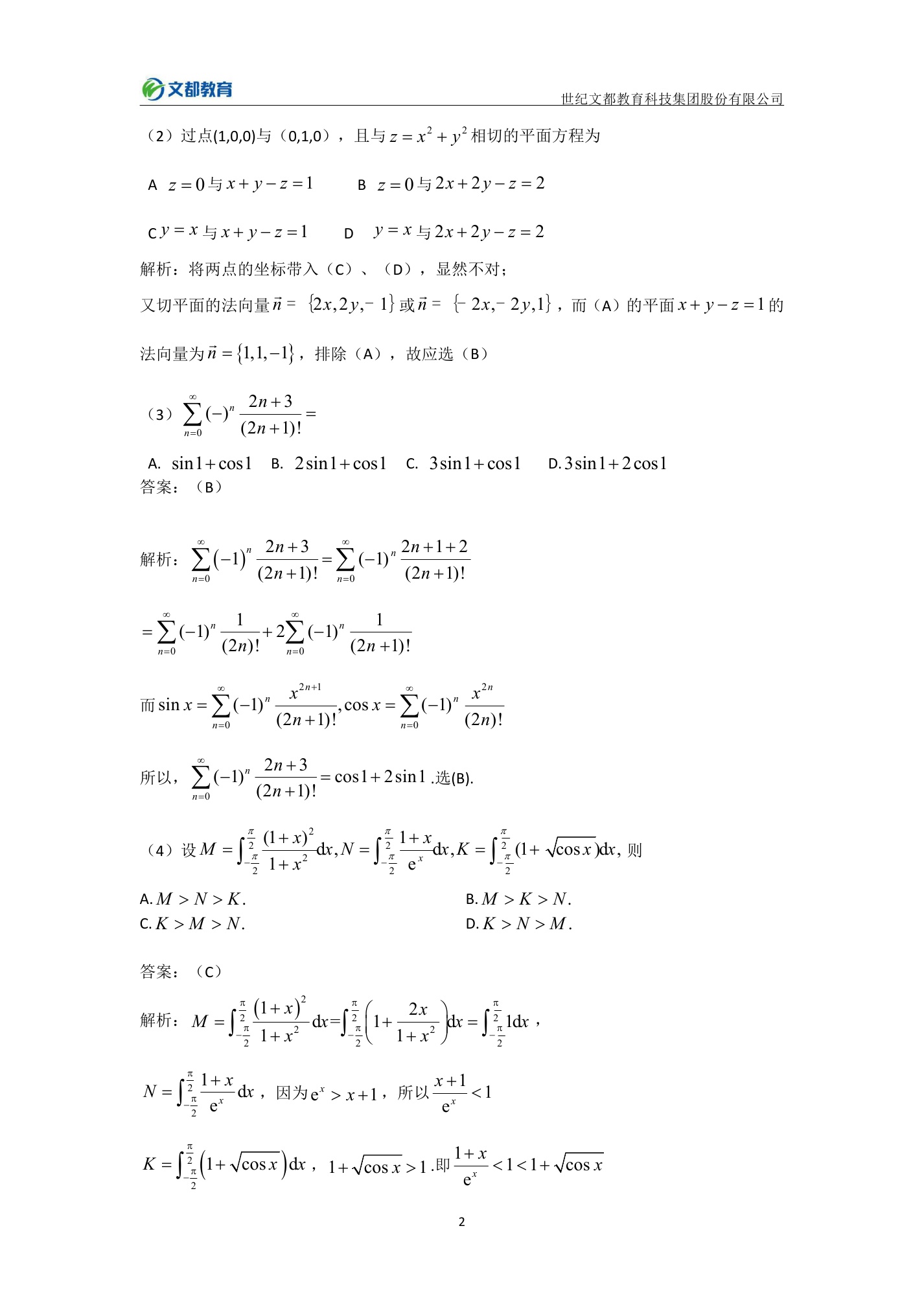 2018半岛在线注册数学一真题带解析答案完整版(2)