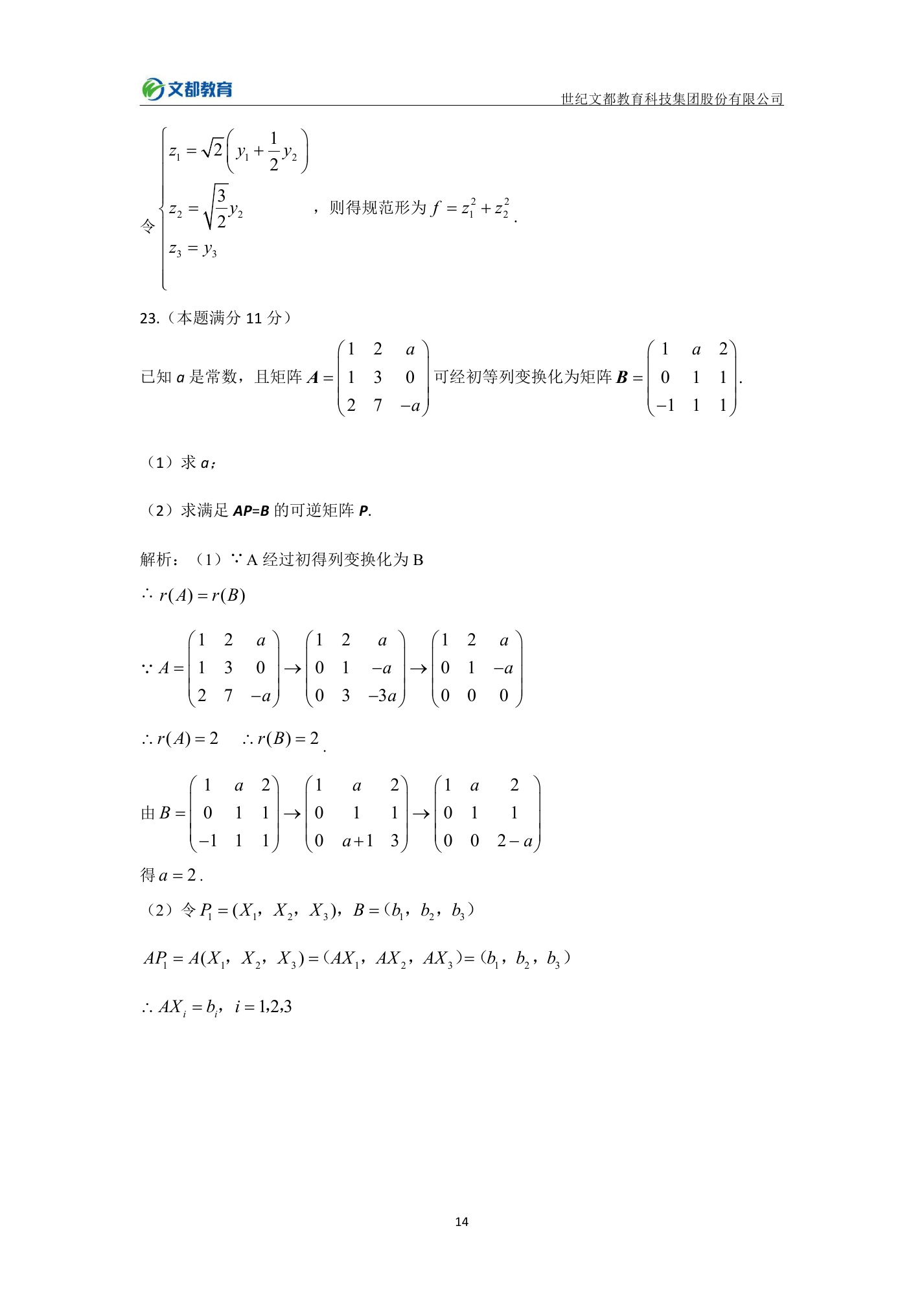 2018半岛在线注册数学二真题带解析答案完整版(14)