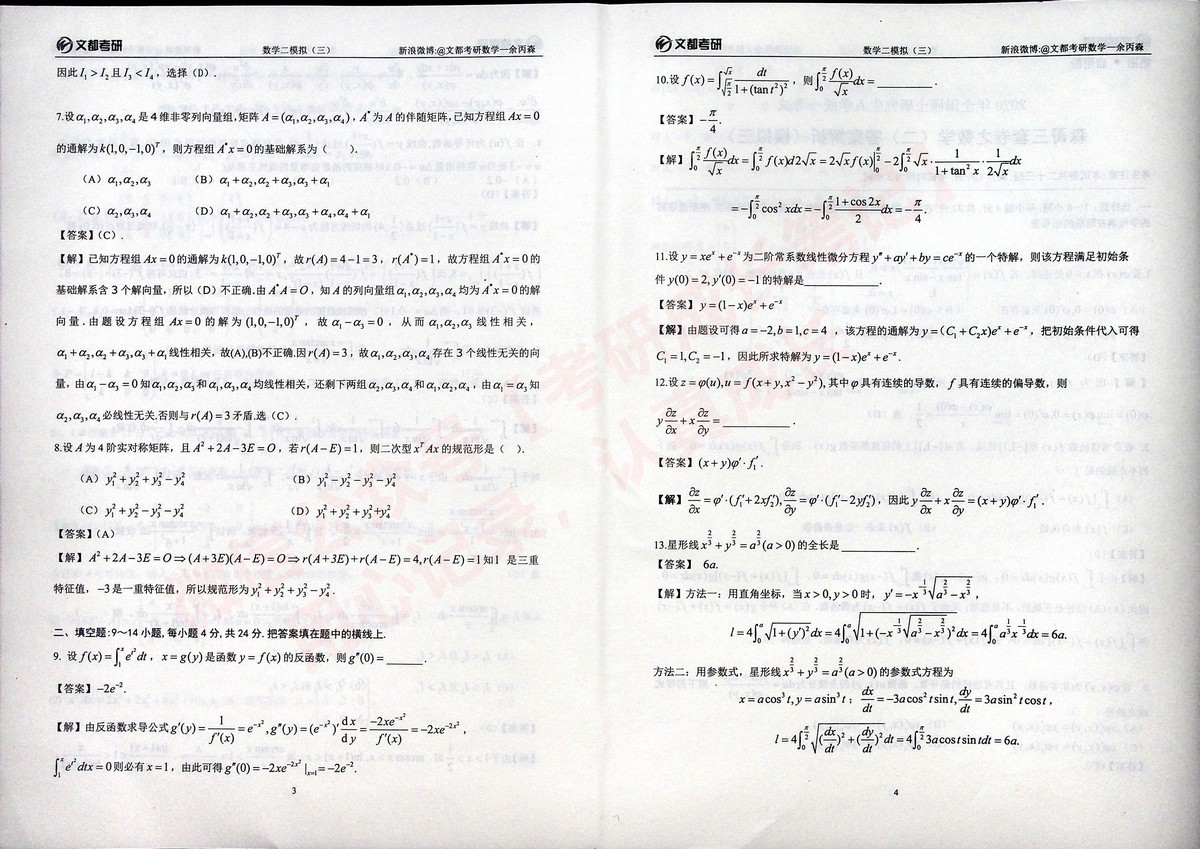2020合工大森哥五套卷习题与答案半岛在线注册数学二(20)
