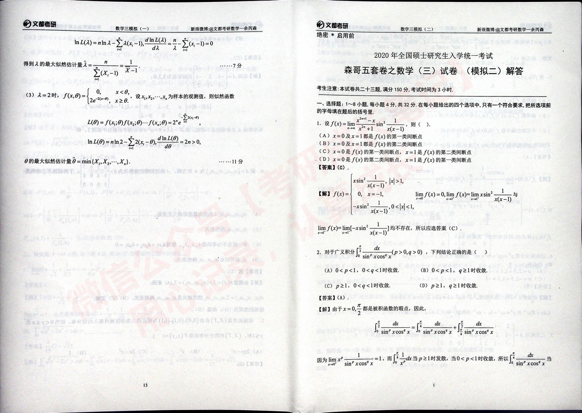 2020合工大森哥五套卷习题与答案半岛在线注册数学三(17)