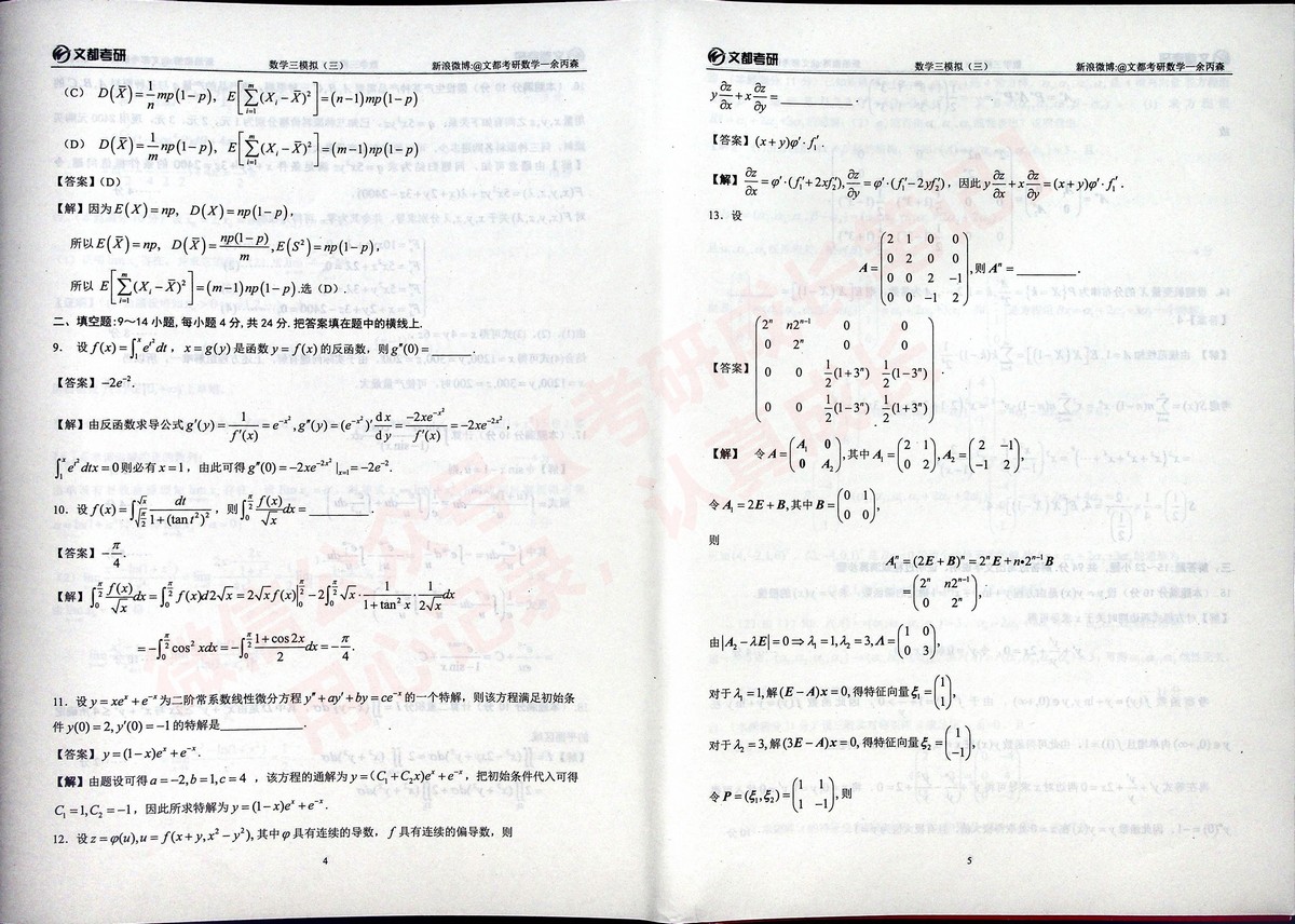 2020合工大森哥五套卷习题与答案半岛在线注册数学三(25)