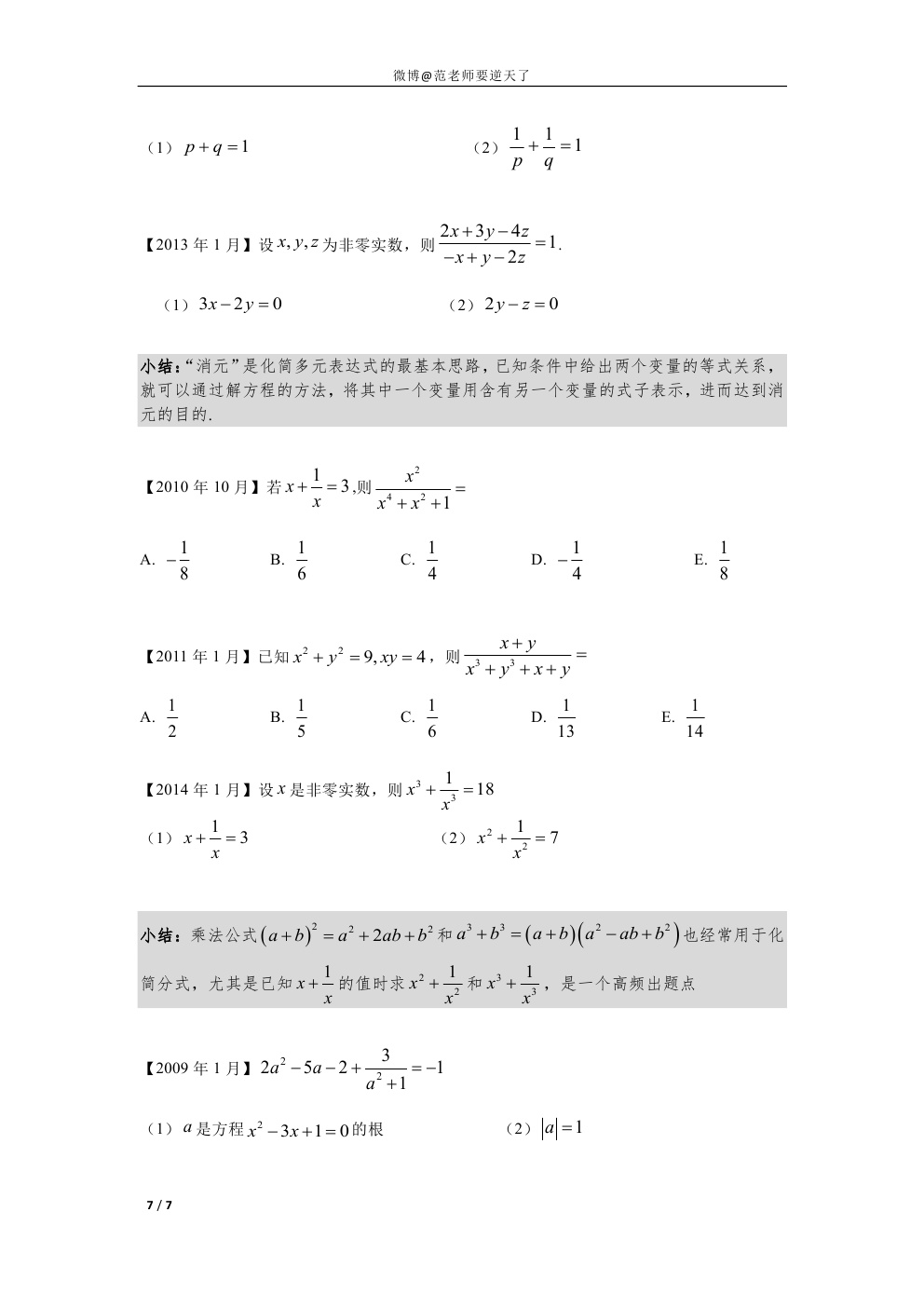 1997-2015管理类联考真题模块化归类详解(代数运算无解析版)(7)