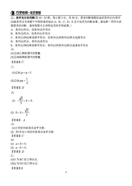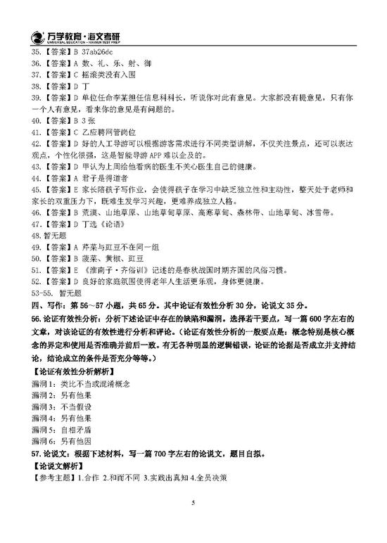 2019年半岛在线注册管理类联考参考答案解析(图片版)