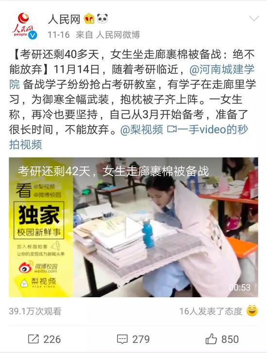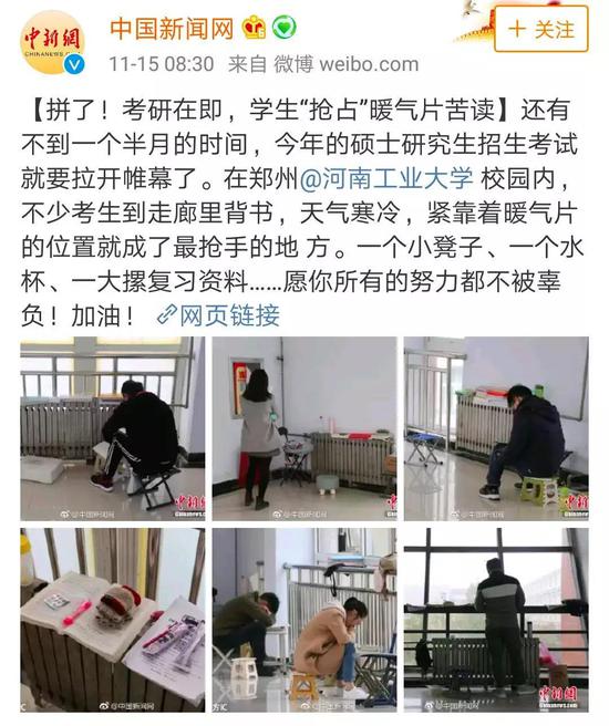 女生坐走廊裹棉被备战:绝不能放弃↓↓↓