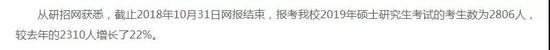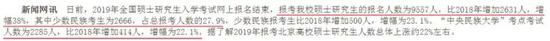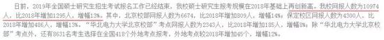 中央民族大学的新闻网报道中还说明19报考北京高校硕士研究生人数总量上涨22%左右。虽然官方还没有正式公布报考人数,但是按照去年的数据来算,去年报考北京院校的考生有32万人,今年将增加7万人左右,报考人数将达到39万人以上。