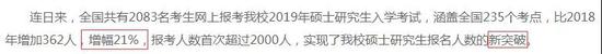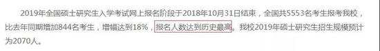 2019年全国硕士研究生招生考试网上报名已经结束,我校持续受到考生热捧,全国第一志愿报考我校研究生人数首次突破万人,达10131人,同比大幅增加60%。同时,今年我校共接收推免生168人,同比增加11.3%。
