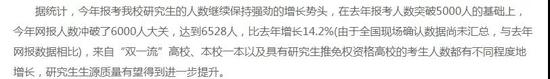 报考长沙理工大学研究生的人数在去年报考人数突破5000人的基础上,今年网报人数达到6528人,比去年增长14.2%,来自“双一流”高校、本校一本以及具有研究生推免权资格高校的考生人数都有不同程度地增长。