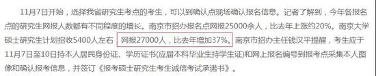 南京大学硕士研究生计划招收5400人左右,网报27000人,比去年增加37%。