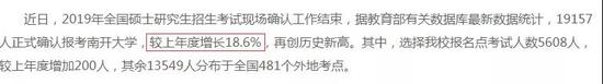 2019年全国硕士研究生招生考试19157人正式确认报考南开大学,较上年度增长18.6%,再创历史新高。