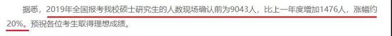 中国农业大学公布的是现场确认前,网上报名统计的考生人数,总计9043名考生,相较去年的增加了1476人,涨幅在20%左右。