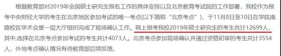 同样,中央财经大学也是在现场确认后公布的报考数据,今年报考央财的考生共计12699人,这只是参与网上报名的人数,通过现场确认资格的应该达不到这么多。
