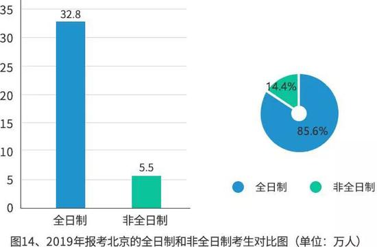 32.8万人报考全日制硕士研究生,约占85.6%;5.5万人报考非全日制硕士研究生,约占14.4%。