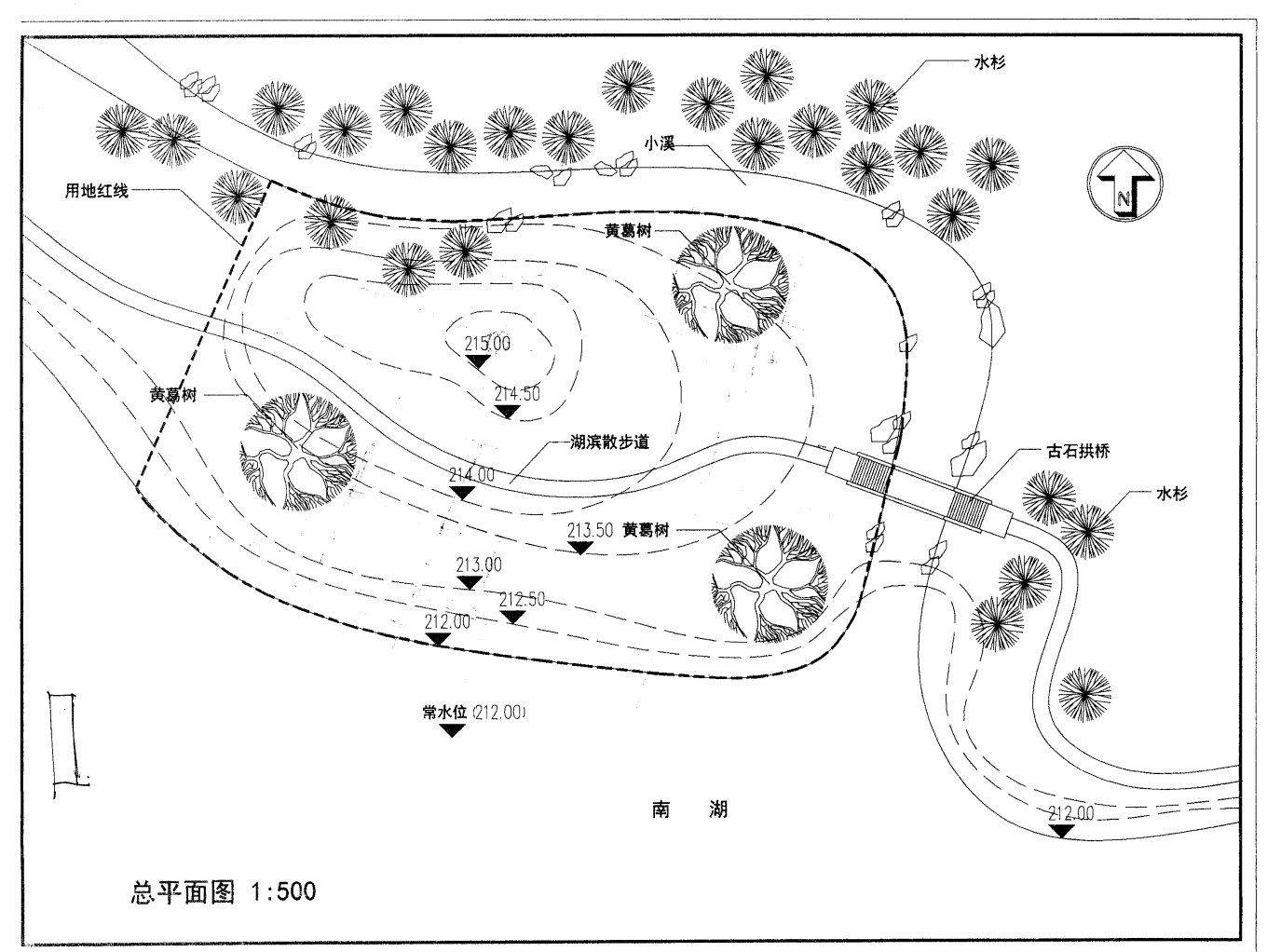 此题,设计用地不大,关键看清原地形。原地形是北部有一明显的土坡,部分地区局部有40M到60M的陡砍,我觉得这里是得分点。关键是处理好这个位置的设计,此处因为落差明显,可设置景观文化墙。别处可自行设计。个人意见,仅供参考。