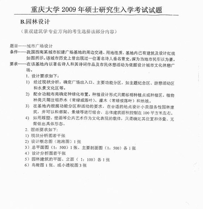 2010-2014年重庆大学风景园林快题半岛在线注册真题(7)