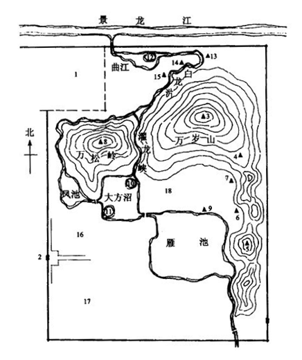 38.请绘制出北宋时期皇家园林艮岳的平面图。