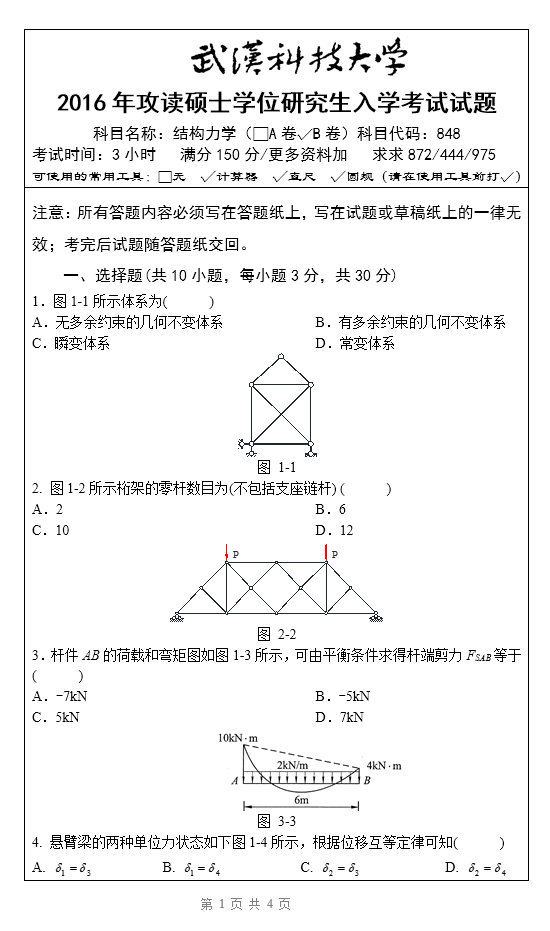 专业课半岛在线注册资料 本站小编 半岛在线注册 2018-02-20东南大学土木半岛在线注册2015年925结构力学真题题型介绍分析