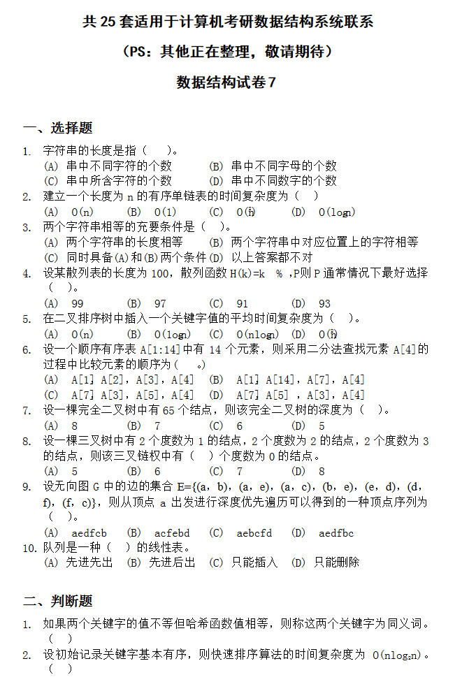 计算机半岛在线注册资料 本站小编 福瑞半岛在线注册网 2016-12-15计算机半岛在线注册数据结构试卷十(练习题含答案)
