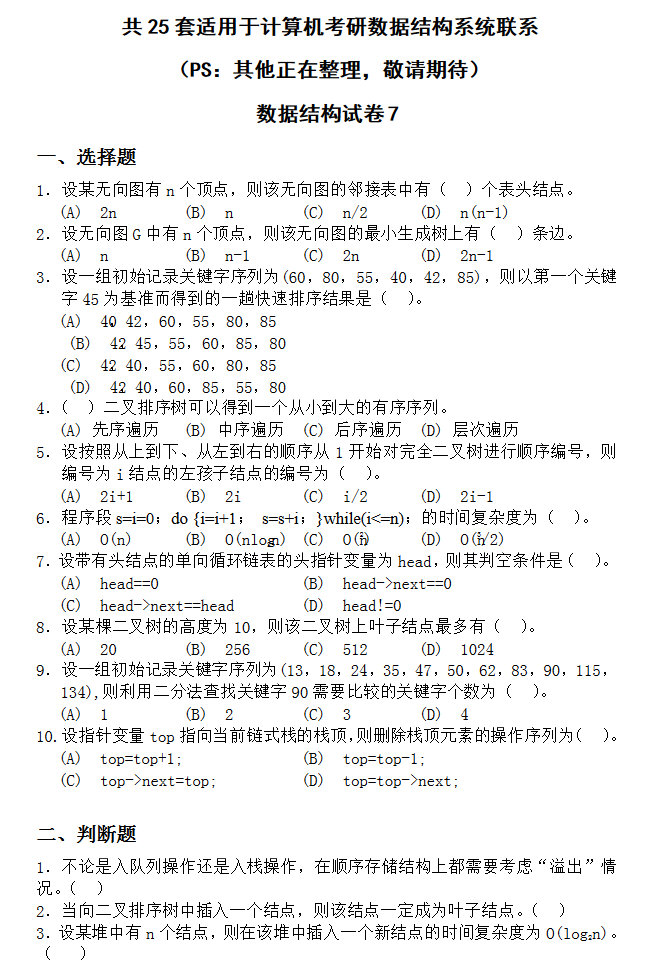 计算机半岛在线注册数据结构试卷七(练习题含答案)