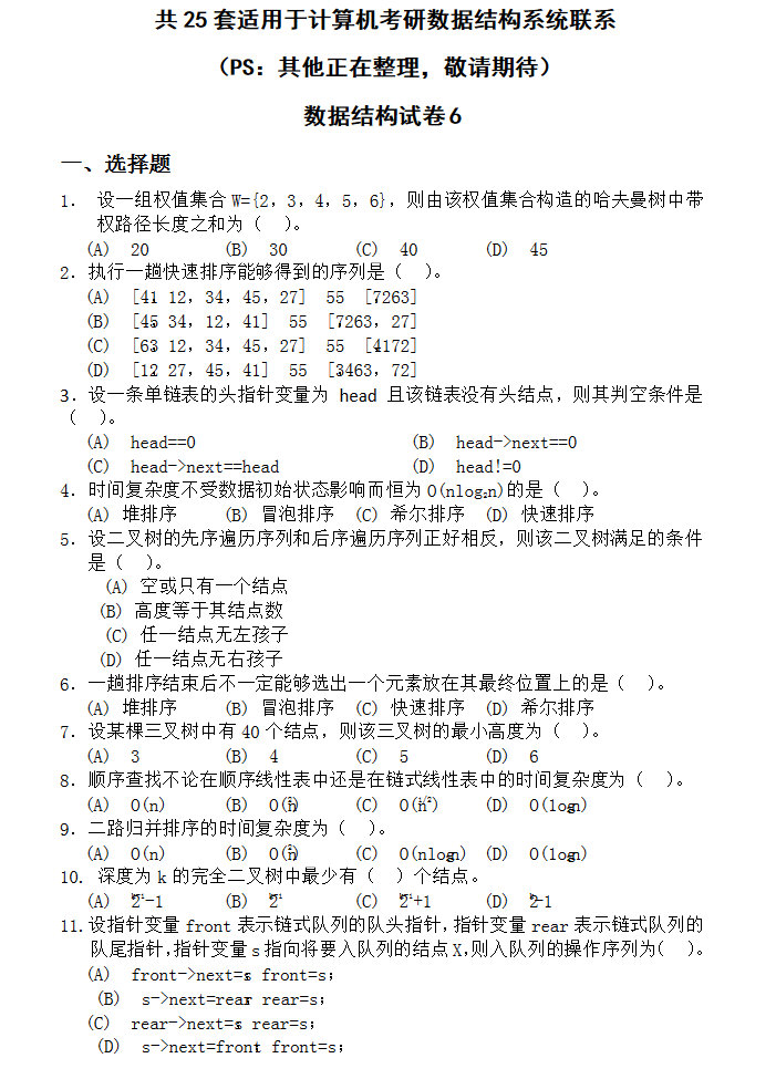 计算机半岛在线注册数据结构试卷六(练习题含答案)