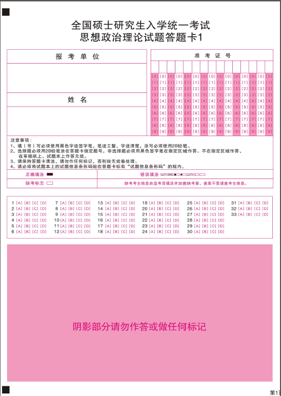 2017年半岛在线注册政治答题卡样卡