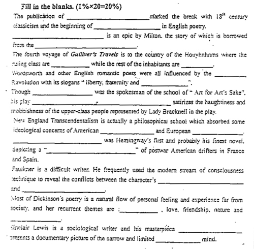 2003年南京师范大学英美文学半岛在线注册试题