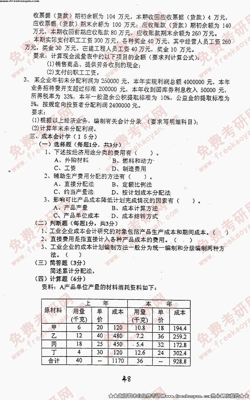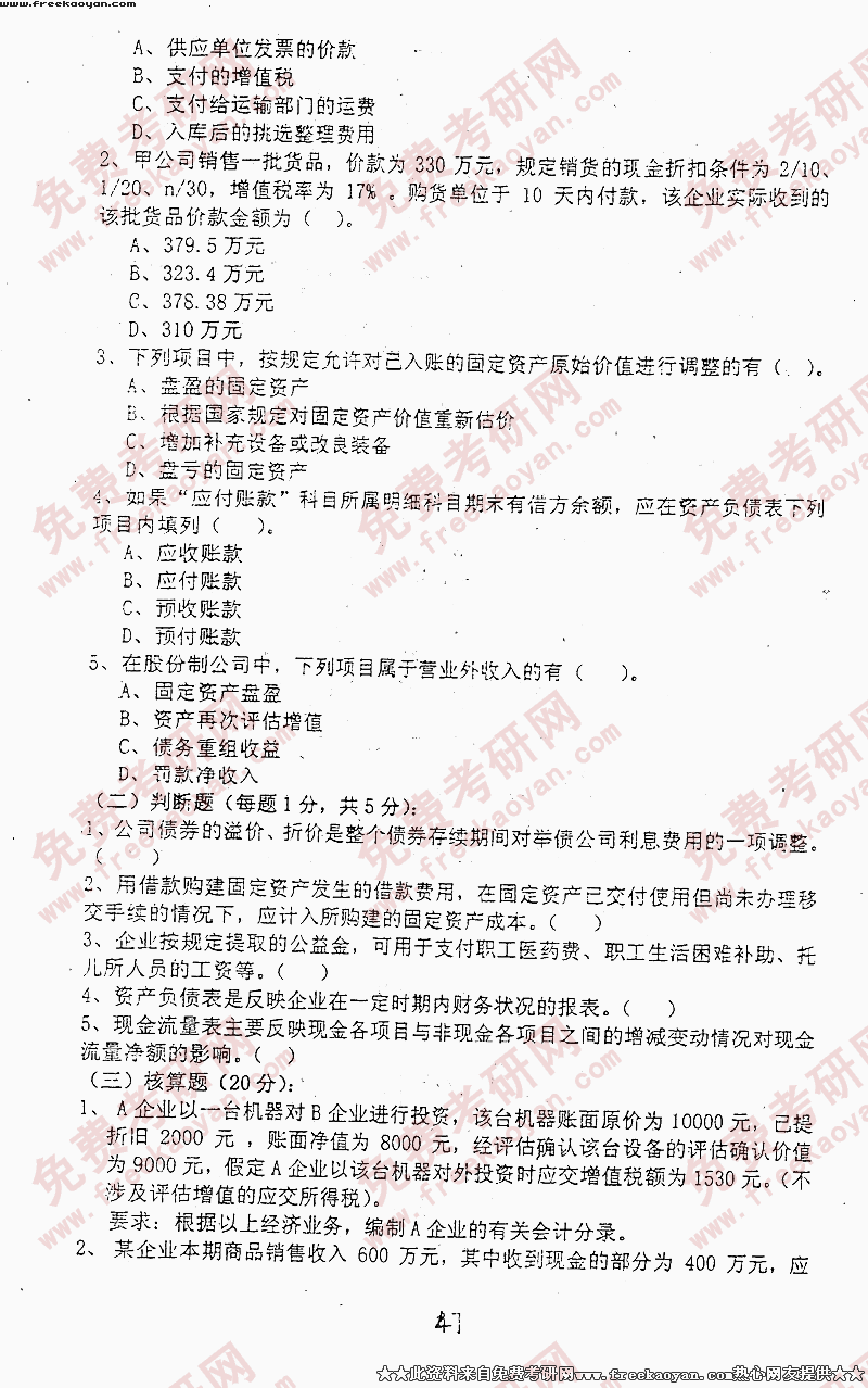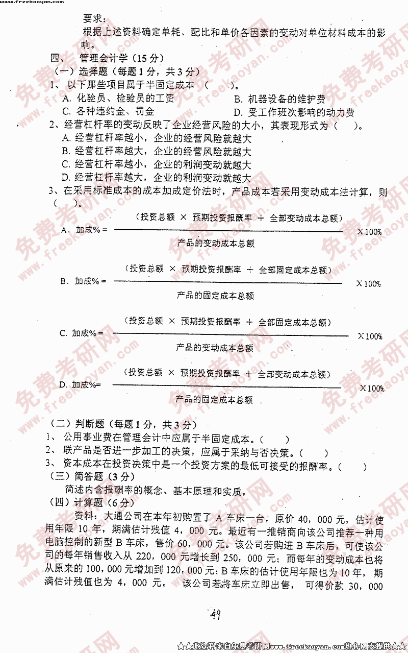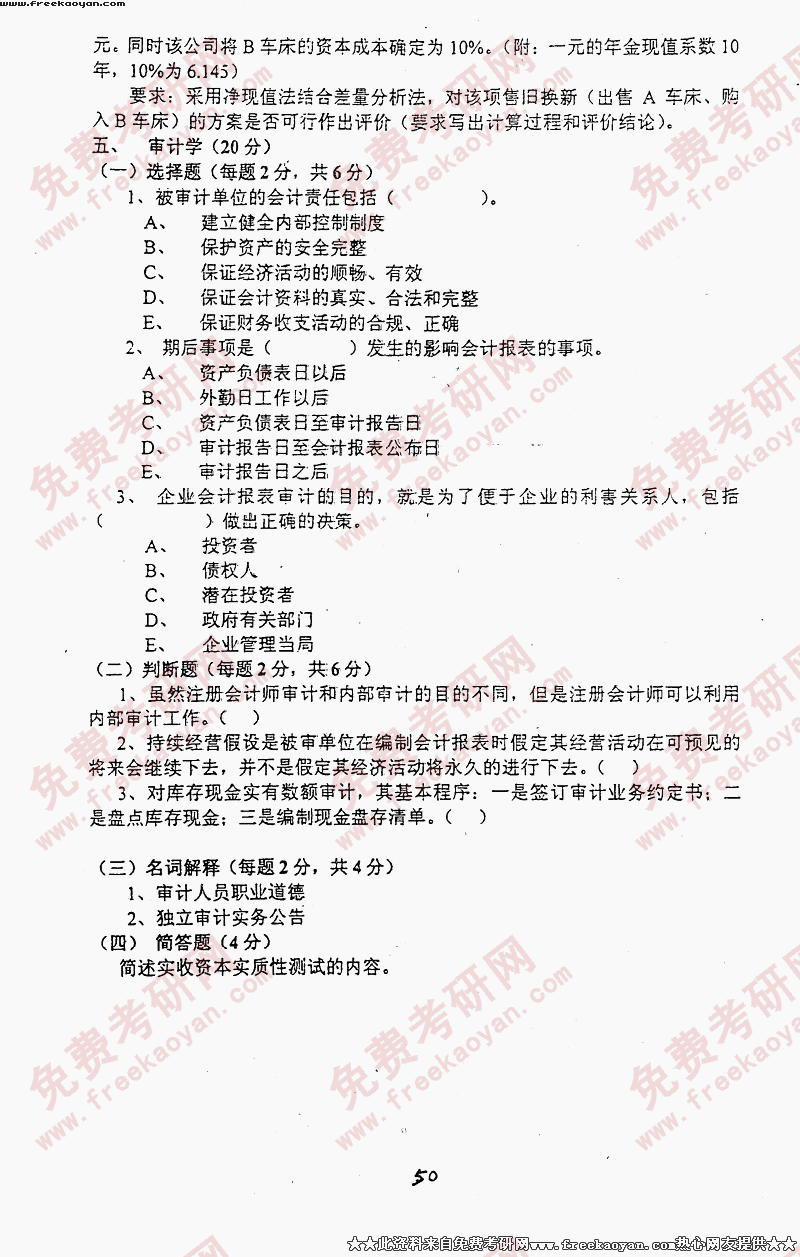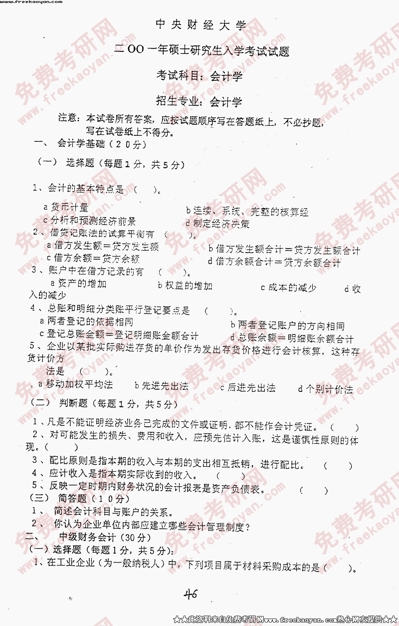中央财经大学2003年半岛在线注册真题-所有专业复试试题