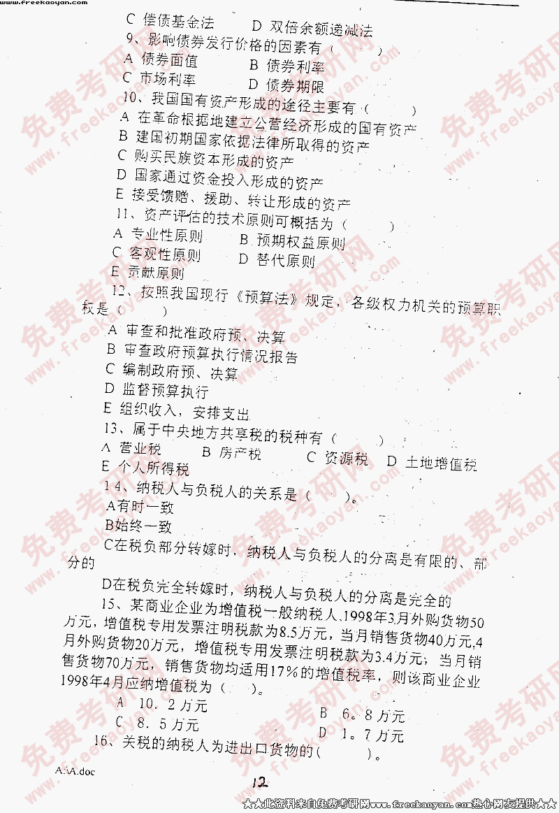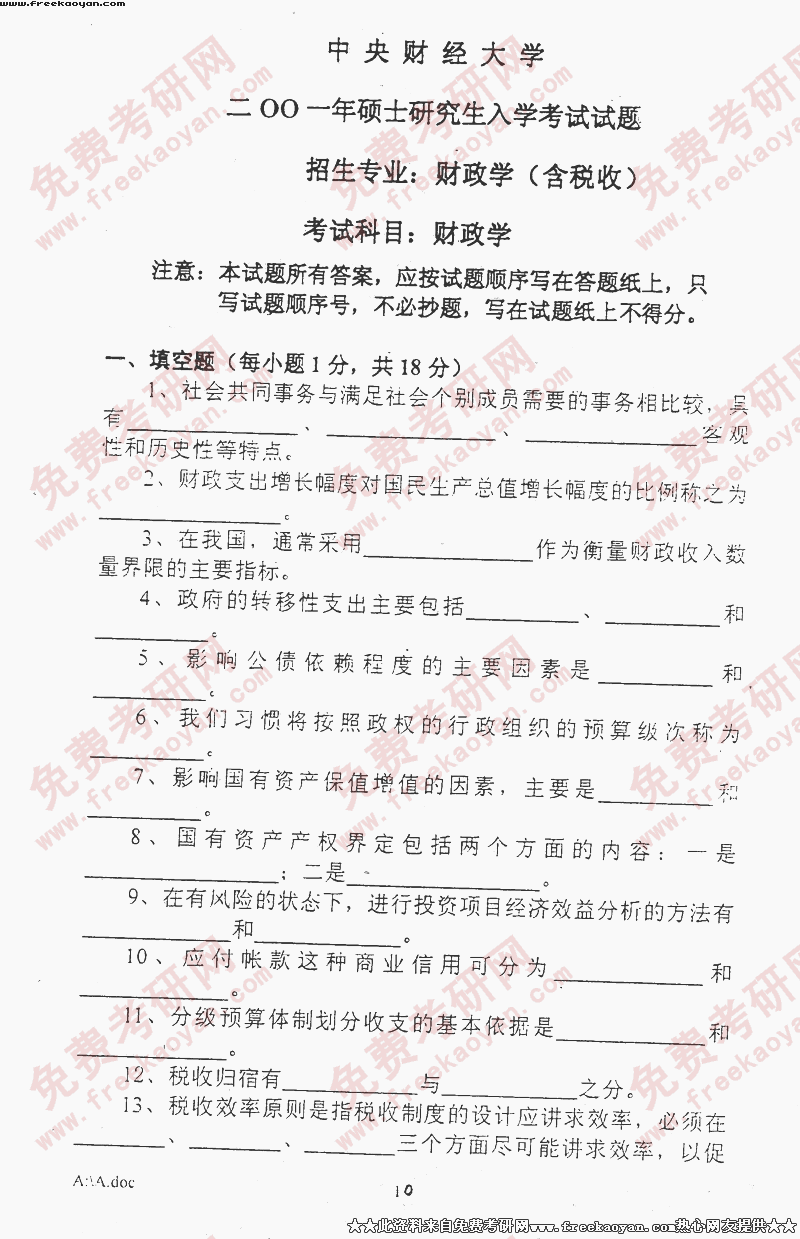 中央财经大学2003年半岛在线注册真题-所有专业复试试题