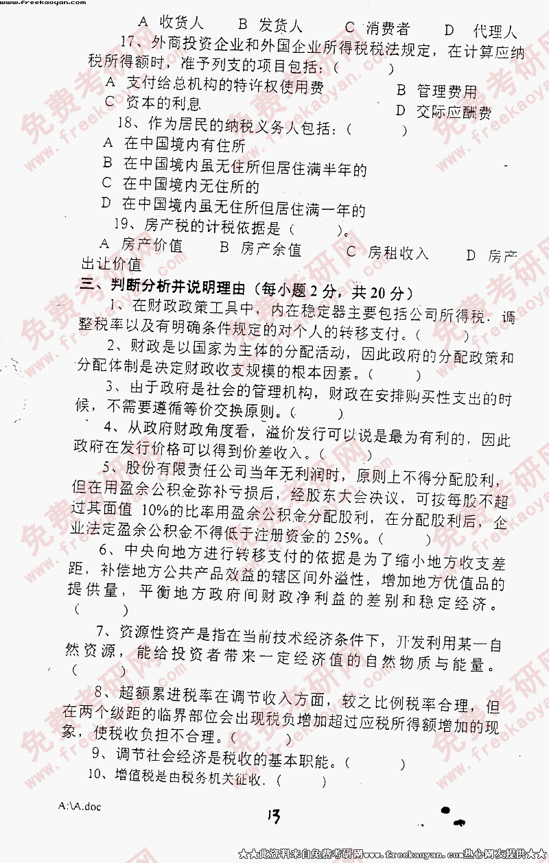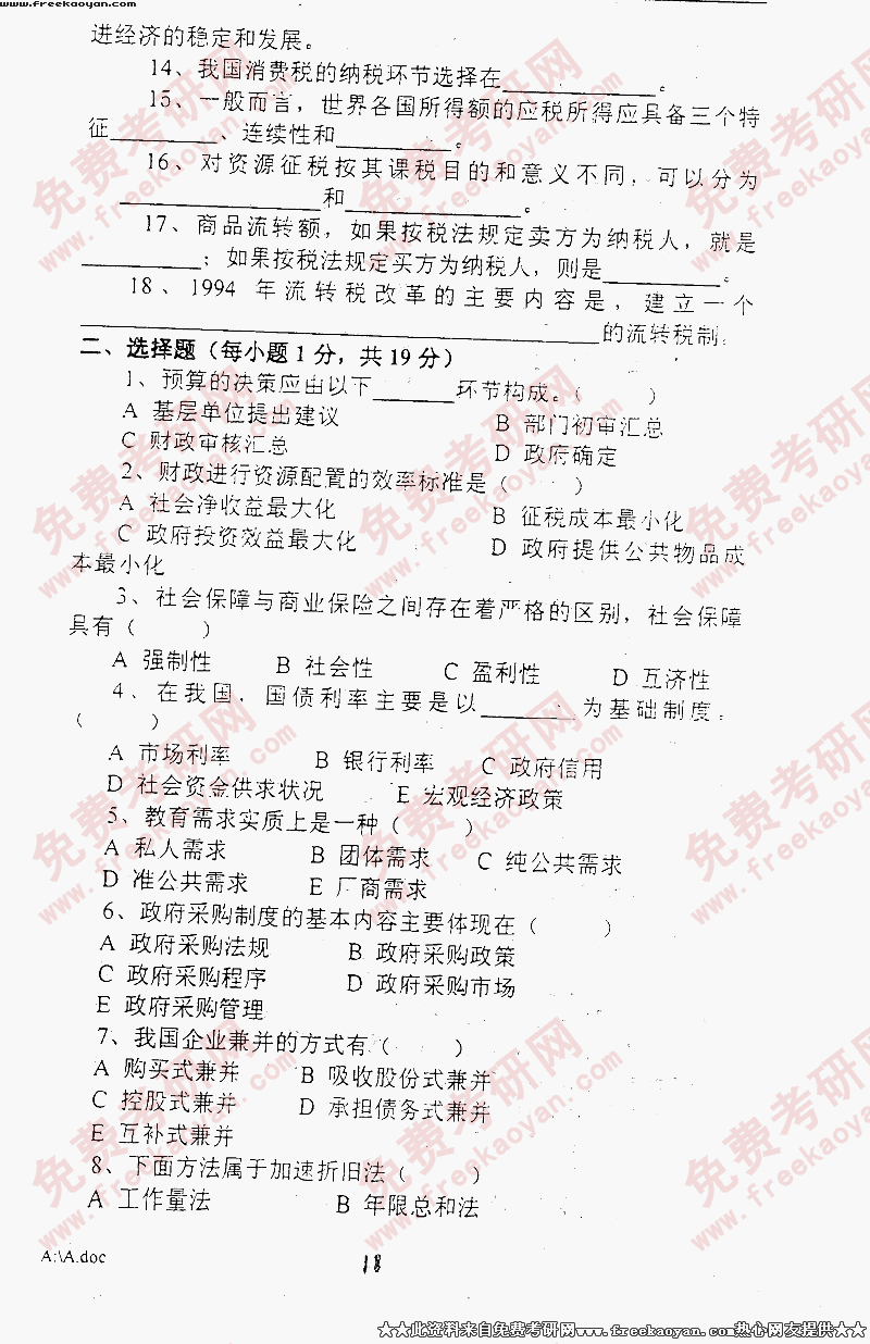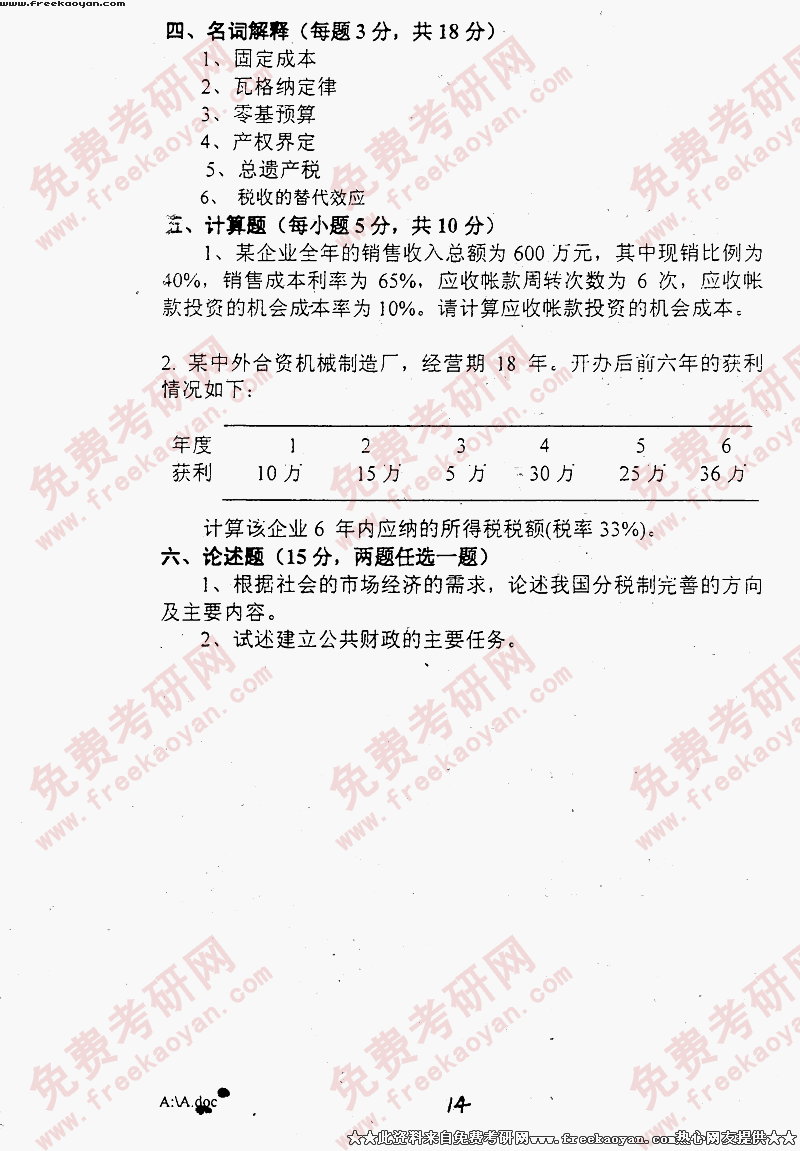 中央财经大学2004年半岛在线注册真题-财政学复试