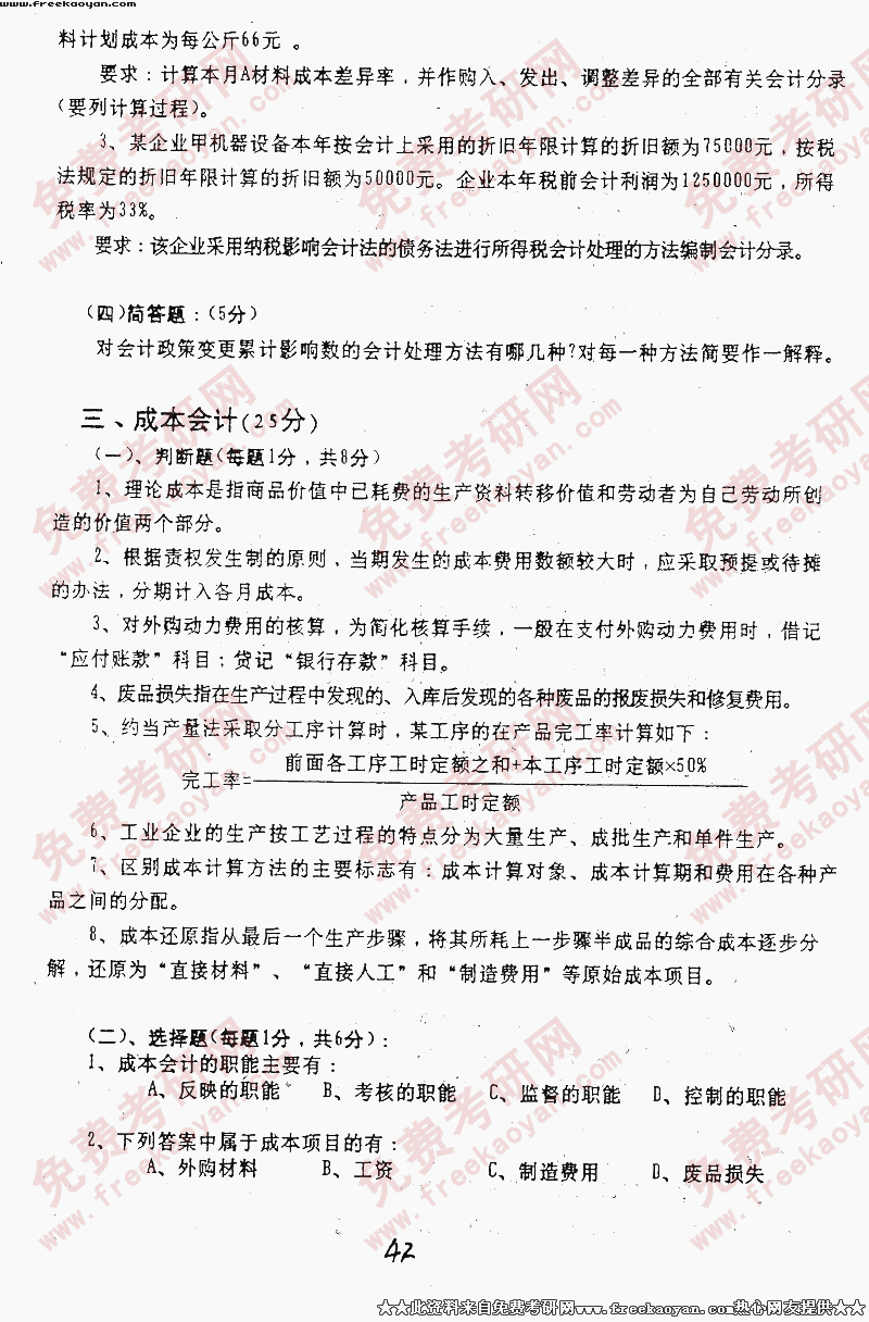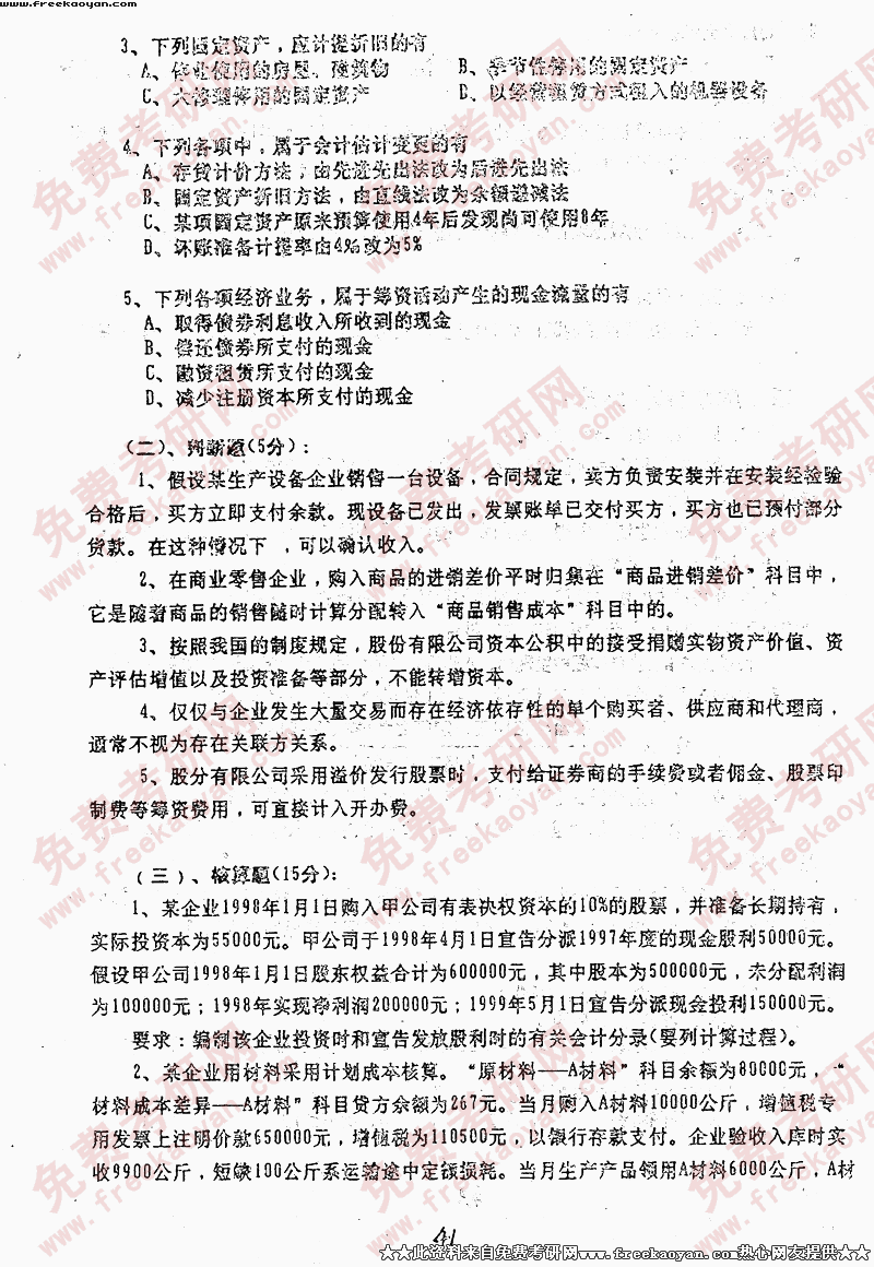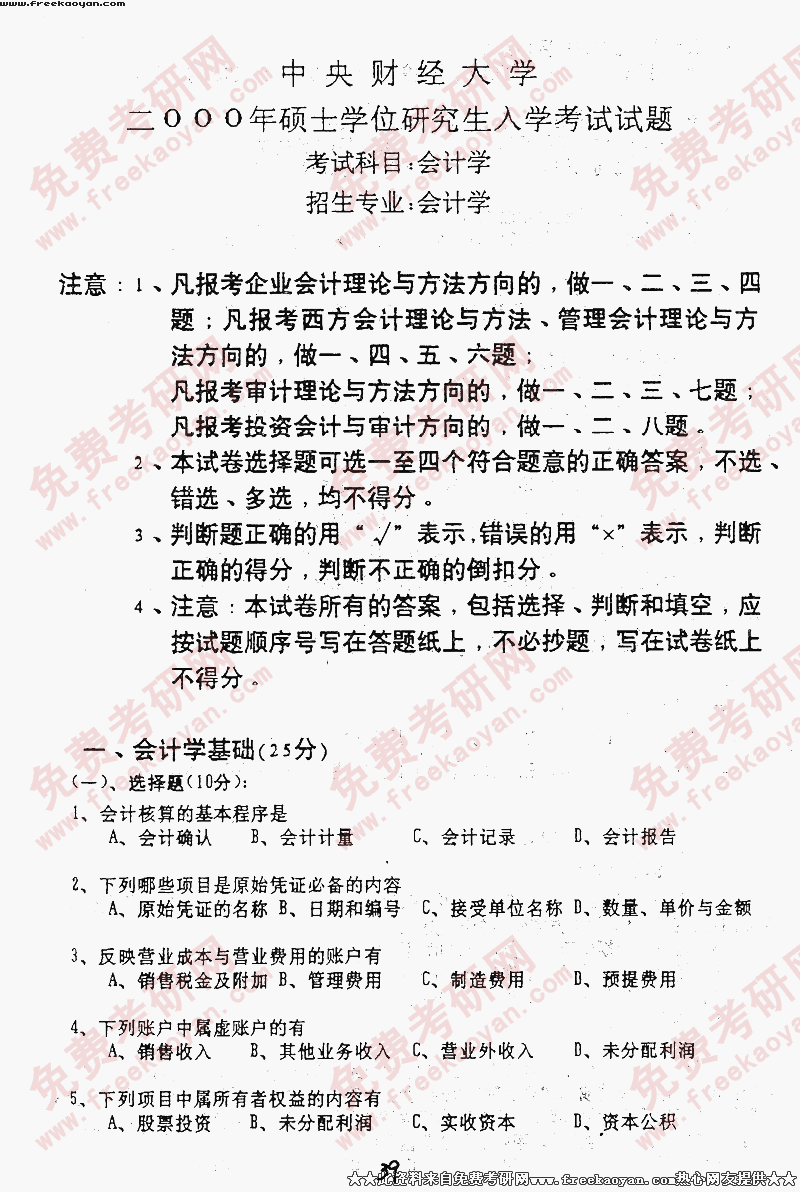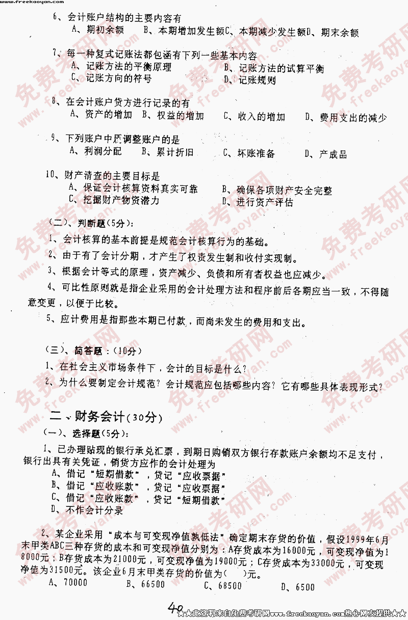 中央财经大学2003年半岛在线注册真题-所有专业复试试题