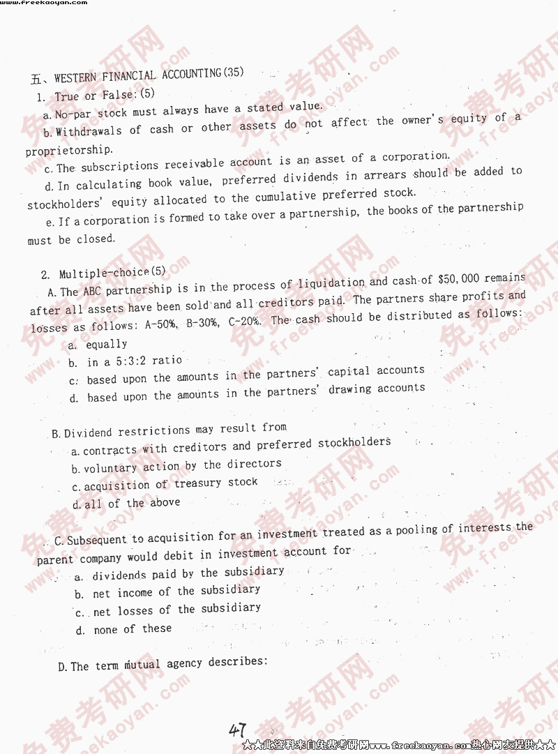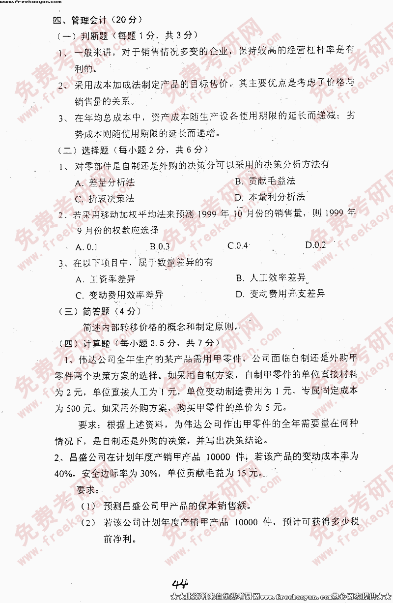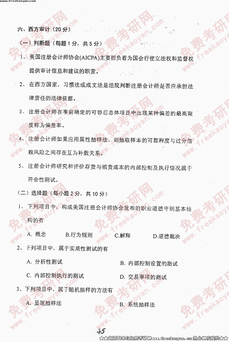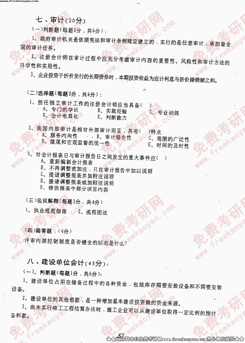 中央财经大学2003年半岛在线注册真题-所有专业复试试题