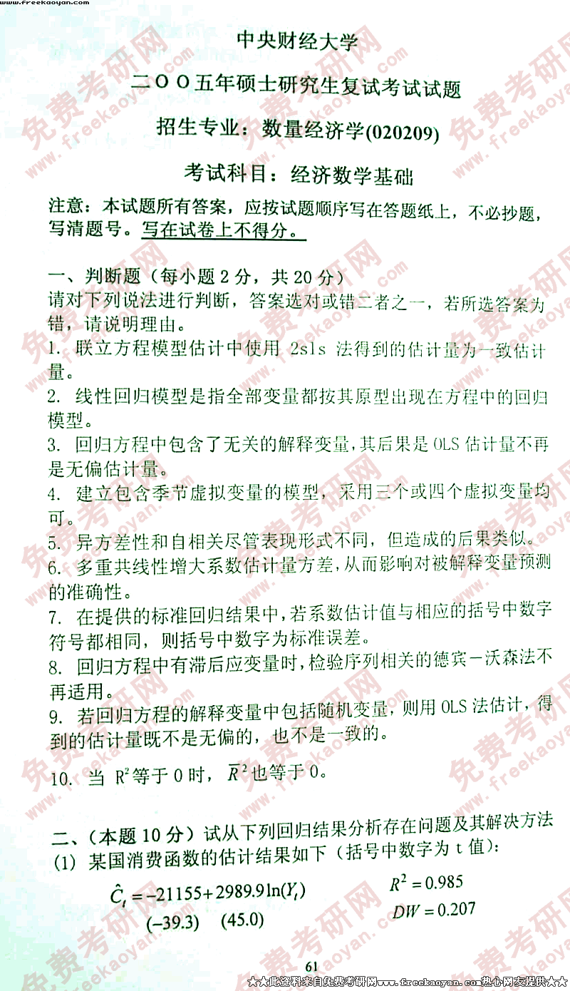 专业课半岛在线注册经验 本站小编 FreeKaoyan 2018-01-22中财1999年西方经济学试题(保险精算方向)一、单项选择填空题(30分)1.就两种替代商品来说,其中一种商品的价格上升,会使另一种商品的价格()A.下降 B.不变 C.上升 D.不确定2.根据消费者选择理论,边际替代率递减意味着()A.无差异曲线的斜率为正B.无差异曲线的斜率为负C.预算线斜率 ...