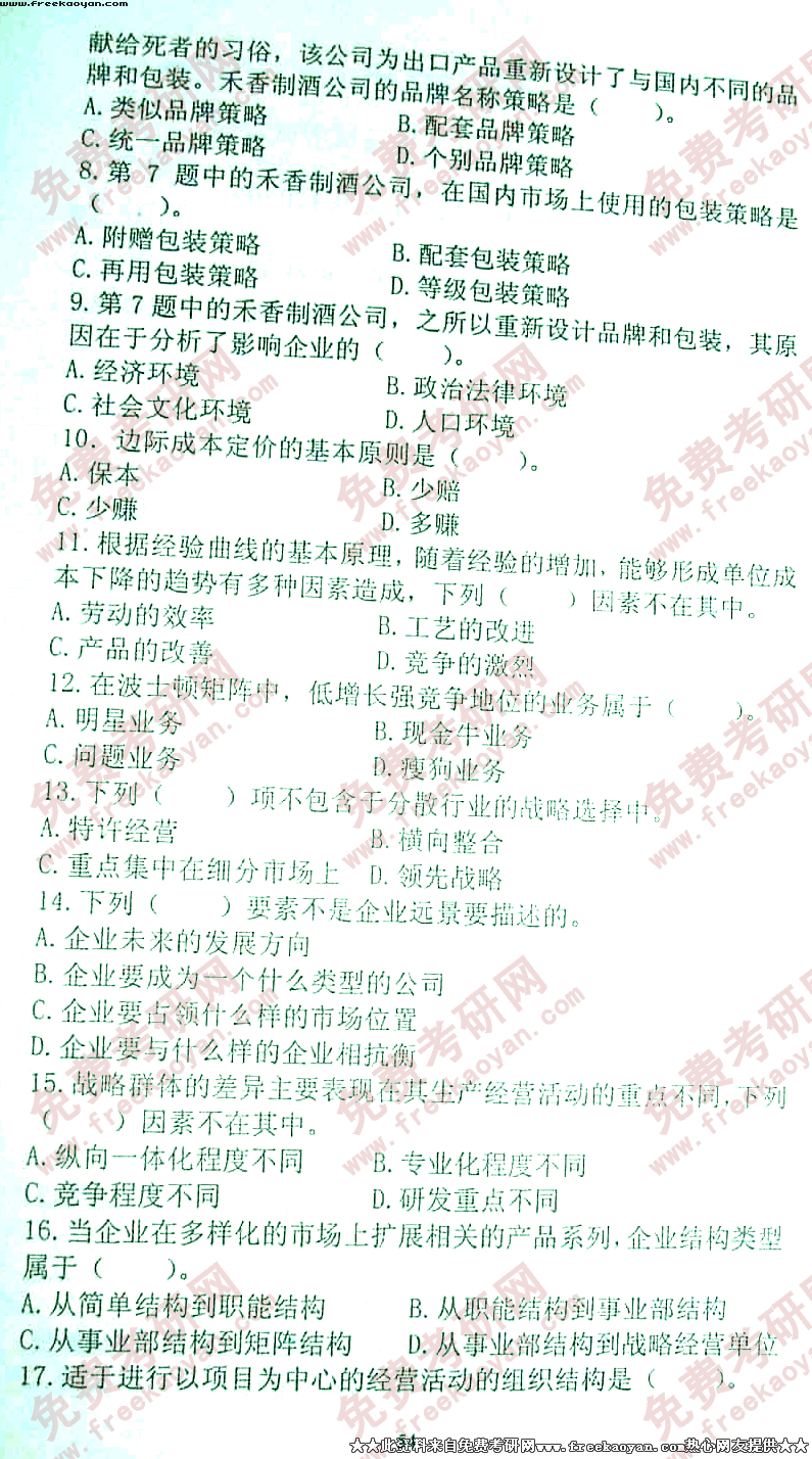 专业课半岛在线注册经验 本站小编 FreeKaoyan 2018-01-22中央财经大学 2004年硕士研究生复试考试试题 招生专业:国际贸易学 考试科目:国际贸易专业综合考试一.单项选择题(14分)1.在比较利益模型中,两种参与贸易商品的国际比价( )A.在两国贸易前的两种商品的国内比价之上B.在两国贸易前的两种商品的国内比价之下C.在两国贸易前的两种商品的国内比价之间D ...