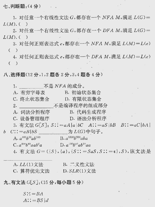 北京航天航空大学2000年半岛在线注册真题-数理逻辑与编译技术