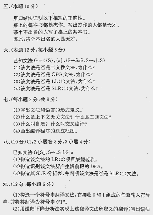 北京航天航空大学1998年半岛在线注册真题-数理逻辑与编译技术