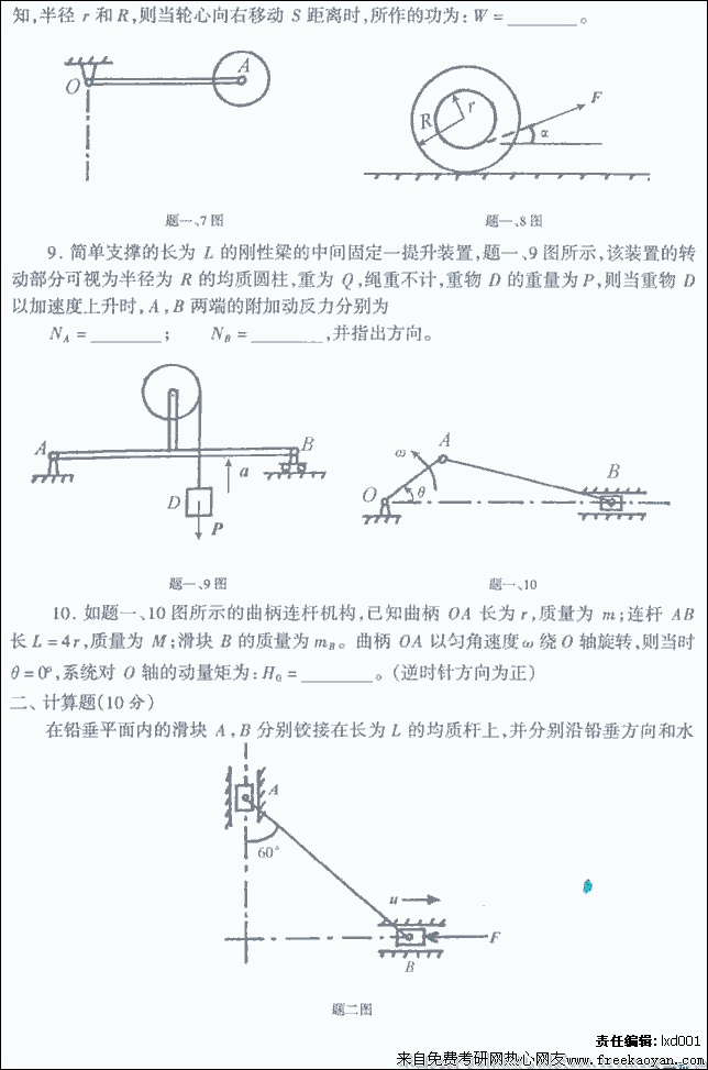 北京航天航空大学2001年半岛在线注册真题-理论力学