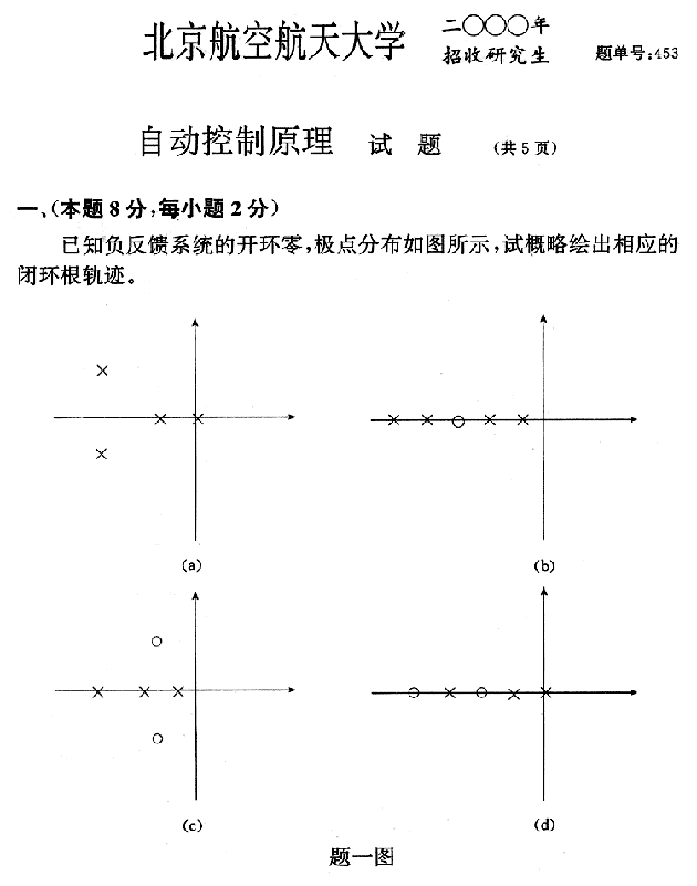 北京航天航空大学2000年半岛在线注册真题-自动控制原理