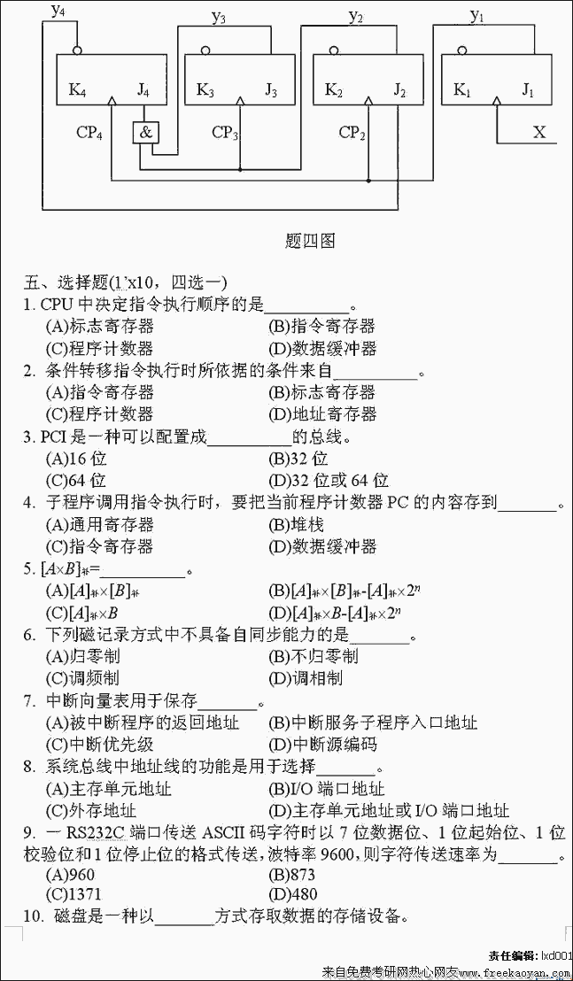 专业课半岛在线注册经验 本站小编 FreeKaoyan 2018-01-22北京航天航空大学1999年半岛在线注册真题-数字逻辑与计算机组成原理