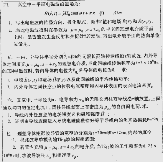 北京理工大学1999年半岛在线注册真题-电磁场理论