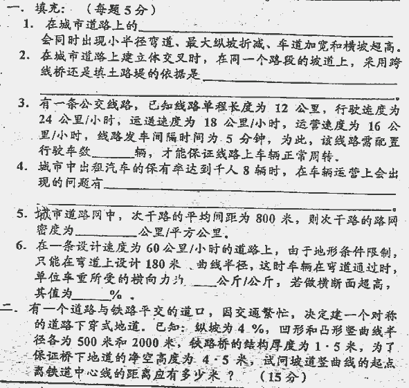 同济大学1999年半岛在线注册真题-城市交通与工程规划