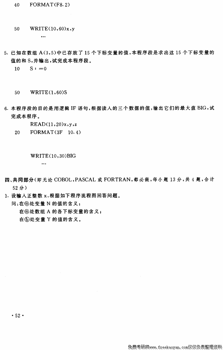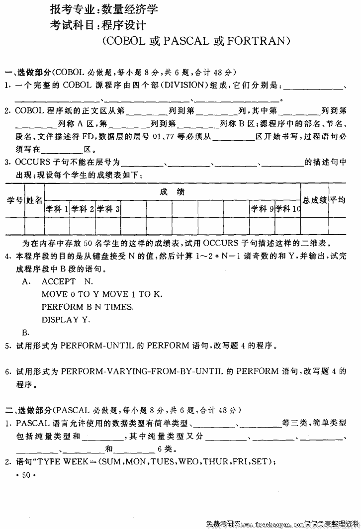 上海财经大学1994年半岛在线注册真题-程序设计(COBOL或PASCAL或FORTRAN)