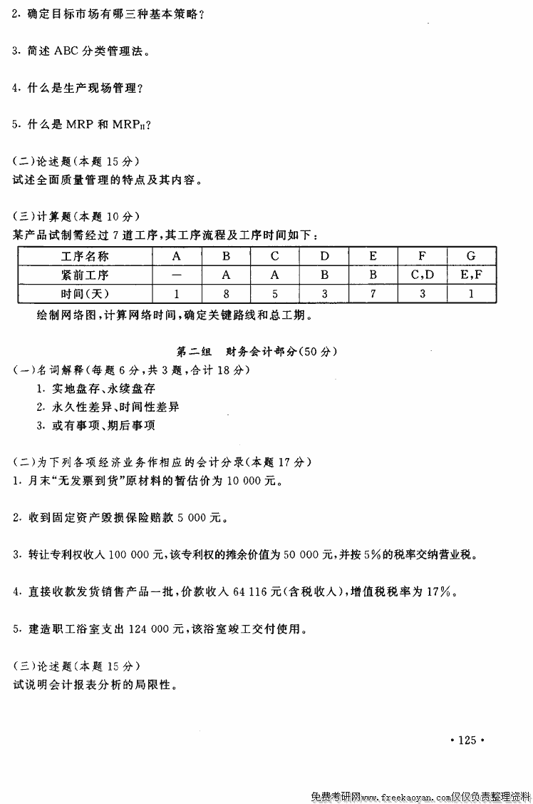 一 . 名词解释 ( 每题 3 分 , 共 10 题 , 合计 30 分 ) 1. 公司制 2. 生产劳动 3. 产业结构 4. 宏观调控 5. 失业 6. 市场调节 7. 经济公平 8. 集约型经济增长 9. 超额利润 10. 资本有机构成 二 . 简述题 ( 每题 10 分 , 共 4 题 , ...专业课半岛在线注册经验 本站小编 FreeKaoyan 2018-01-22上海财经大学1996年半岛在线注册真题-工业经济管理(含管理学原理与企业经营管理)
