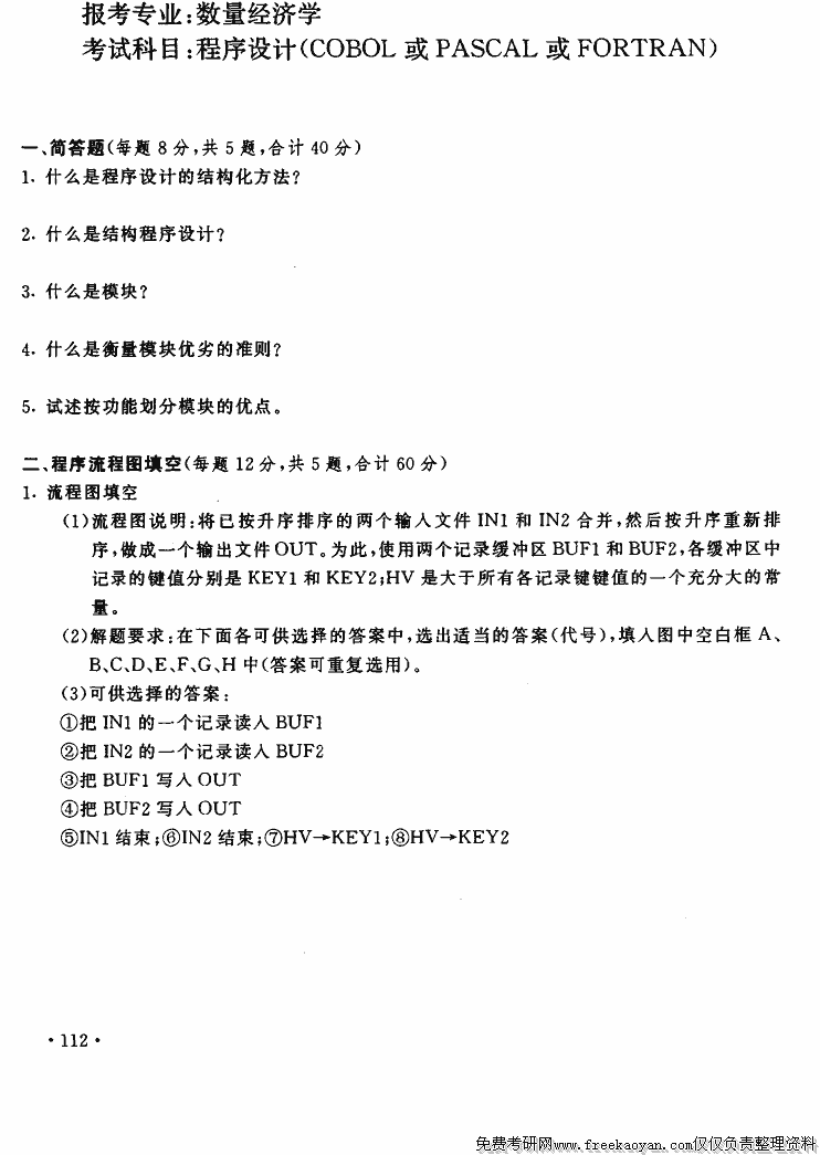 上海财经大学1995年半岛在线注册真题-程序设计(COBOL或PASCAL或FORTRAN)