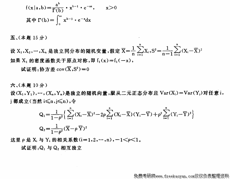 上海财经大学1997年半岛在线注册真题-概率论与数理统计B