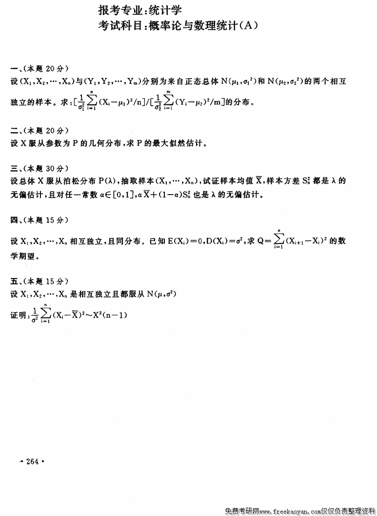 上海财经大学1997年半岛在线注册真题-概率论与数理统计A