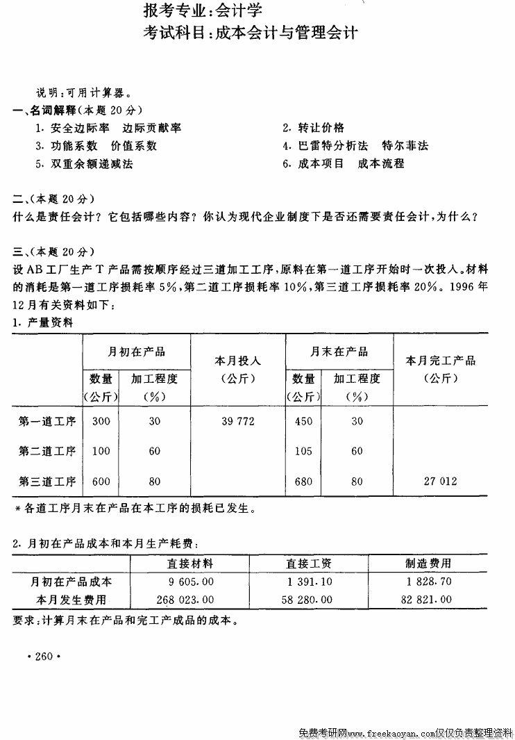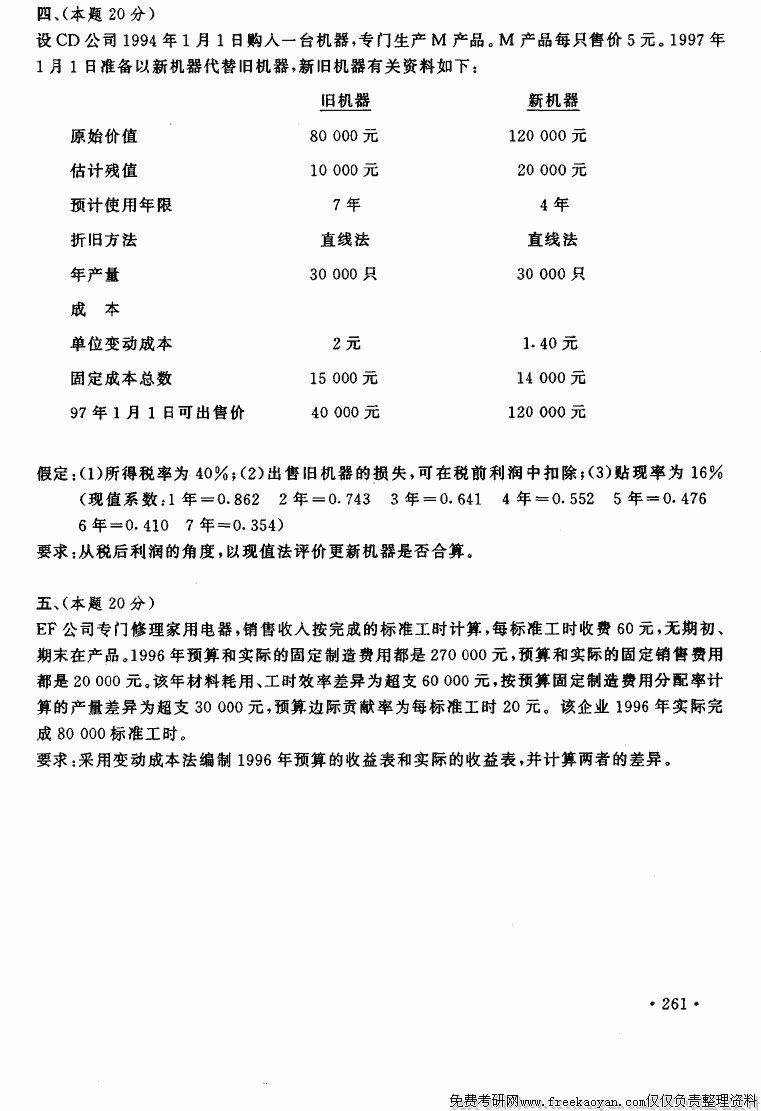 上海财经大学1997年半岛在线注册真题-成本会计与管理会计